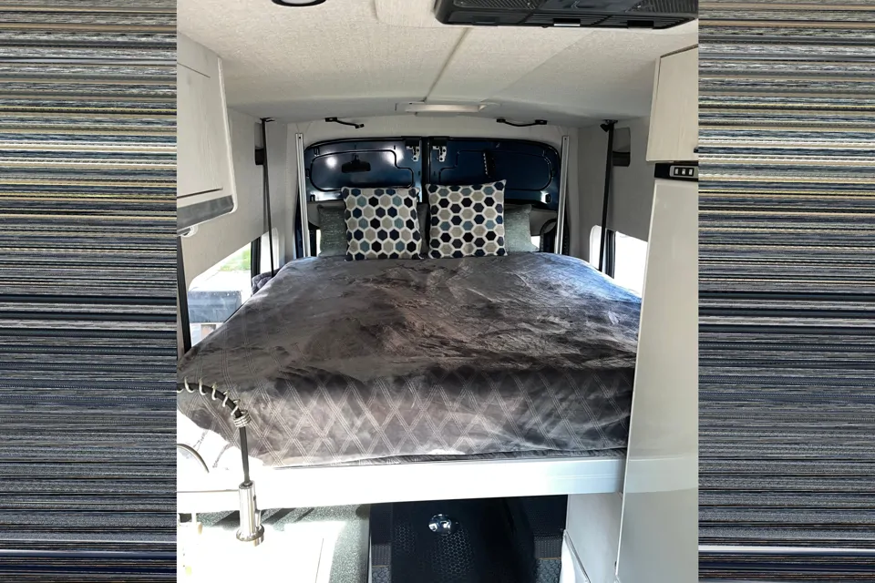 76” power bed lift over dinette with LED reading lights and USB charging.