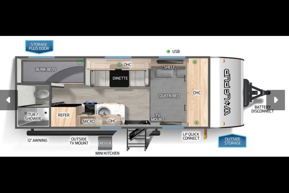 Brand new (purchased Jan 2026) This 2026 Wolf Pup Black Label 16BHSBL is a lightweight (dry weight 3850lbs), bunkhouse travel trailer featuring an upgraded Black Label package with fiberglass siding, frameless windows, solid surface countertops, upgraded memory foam mattress (Queen Bed), plus family-friendly amenities like rear bunks, an exterior mini-kitchen with a fridge, power awning, and smart control panel, 200Watt Solar Panel, lithium battery with interior inverter (200 Watt) Tankless water heater and is designed for easy towing by mid-size SUVs/trucks