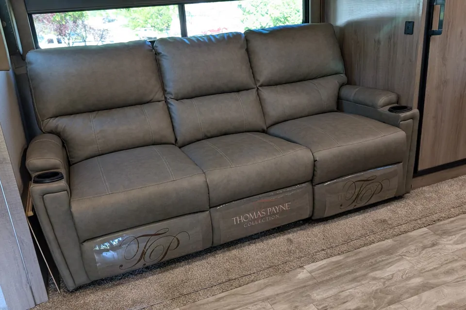 Roku TV Bluetooth stereo with indoor and outdoor speakers. Large awning with soft blue lights for night-time ambience. Heated, massaging recliners. Roomy shower with latch door. Lots of storage. Outdoor kitchen includes two-burner gas stove and small refrigerator. Large outdoor carpet included with rental. Comfortable double bed and two extra-large bunks, all have lights, outlets and USB ports. Air conditioner and heater. Fully stocked with dishes, pots and pans, utensils, pour-over coffee supplies with kettle and some bathroom supplies. This is a super clean, very comfortable trailer.