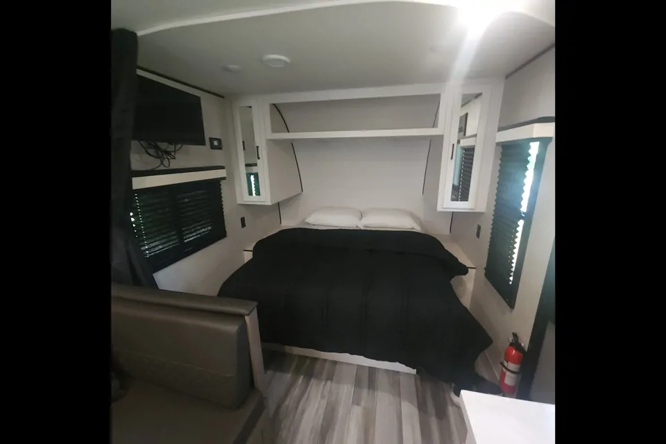 Trailer is equipped with a tankless water heater. 2 propane tanks, An AC and Furnace to keep you cool on the summer days and warm on those chilly cold winter nights. This Trailer is perfect for any couples getaway or family vacation.