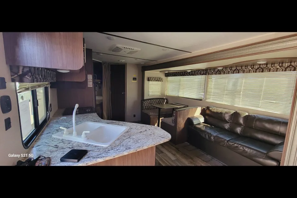 You'll love the full outdoor kitchen and electric awning with LED lights for perfect evenings outside. 1 Inside, enjoy and a central vacuum system to make cleaning a breeze. 2 Whether you're heading to a national park or a local lake, this trailer is fully equipped with a modern kitchen, full bathroom, and plenty of storage for all your gear. Ready for your next adventure!