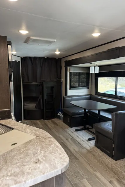 The perfect family friendly trailer for you. This trailer sleeps up to 10 people comfortably. It is loaded with all the latest amenities including Bluetooth speakers inside and out, electric stabilizers, upgraded memory foam bed in master bedroom, huge shower, massive fridge and plenty of storage. It has an outside BBQ also. It is a one stop shop. We provide everything required to have an amazing time minus the food, drink , and paper products. Message us today.