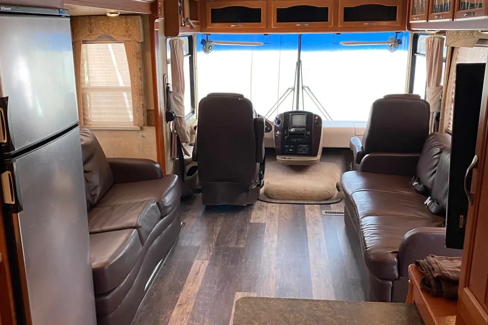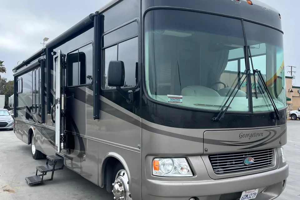 Recently brand new floor installed. 37’ Motorhome with plenty of room and plenty of storage. No special license is required to drive this RV. This coach has a private bedroom with king size bed. Also had two sofas turning into beds. Easy to drive with rear view camera. Big Tv for all family. Great RV for short or long vacations and short or long distancies.
