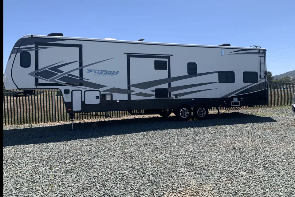 Toy Hauler fifth wheel 13’ garage ,washer and dryer ,electric fireplace ,2 bathrooms (bath/ 1/2, 2 air conditioning units , fully furnished , bar b que with hook up outside with quick connection. Sewage hoses also .