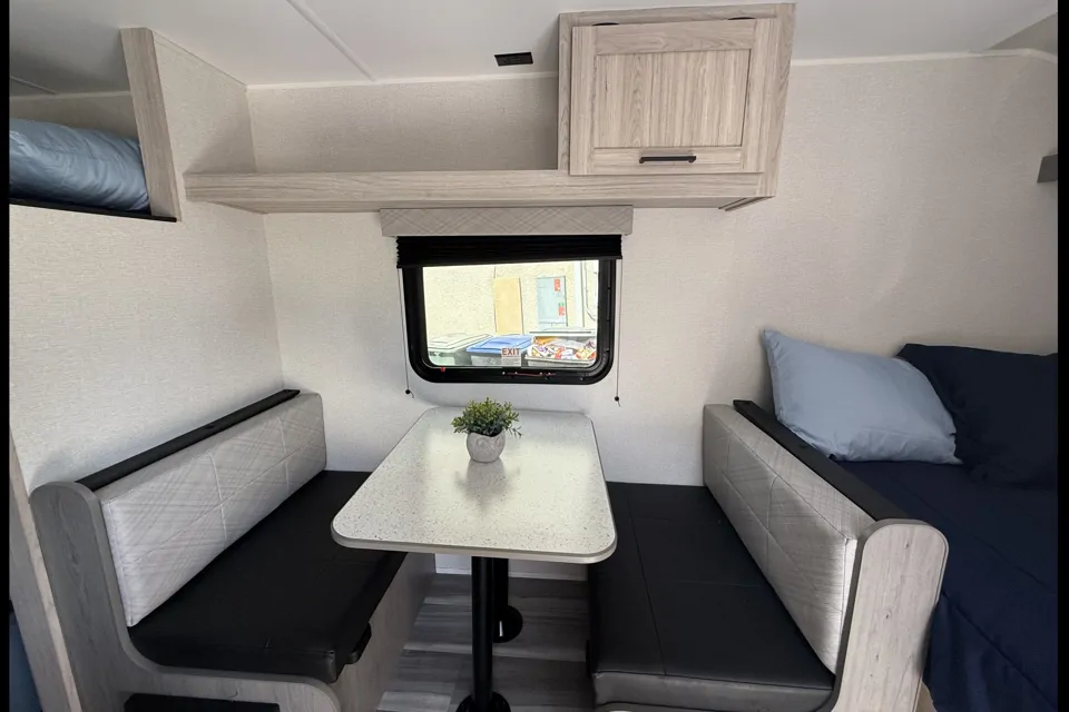 We have this beautiful-brand new travel trailer for you to rent. She is super spacious and ready to hit the road. She has literally everything you need on wheels! Our RV includes bedding, pillows, toilet paper, tooth paste, plates, bowls, utensils, napkins, pots and pans, coffee pot, foil, towels, coloring books and games for the kids, outside chairs, and much more! Please message us with any questions you may have. If you love camping or are a first timer, we are determined to make sure you have the best time ever.