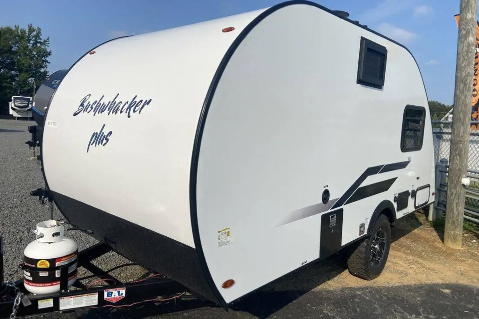 On the interior, Braxton makes excellent use of the space by having an expanded "wet bath" with an integrated shower/toilet enclosure, double burner stove, 3-way fridge, microwave, radio, and a four-person dinette that turns into a queen-sized bed. There are also two bunk beds that are a little bigger than a twin-size bed. Braxton is equipped with a 24-gallon freshwater tank (comes empty), a 17-gallon black water tank, and an 18-gallon grey water tank, which make it great for both off-grid camping and full hook-up camping.
