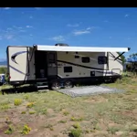 Want a GREAT, luxurious camping experience without the hassle of having to stock everything? We have you covered! This 4 season travel trailer comes with just about everything but the food, beverage and YOU! Very easy to tow with a full sized SUV or truck. Fully stocked kitchen with coffee maker, bath linens and bedding for everyone. These are swapped out, cleaned and sanitized after trip. It even comes with a 2 person tent, sleeping bags and bed rolls just in case the kids want to try sleeping outside! Or maybe you have a couple friends that want to go with and don't have tent. The DVD collection is varied, from action adventure, RomCom to kids movies. The DVD stereo is Bluetooth enabled, USB and CD capable. The awning is 19' long and includes an outdoor adjustable folding table. Want to sit around the campfire with the family and friend's? We have you covered there as well with 4 adult and 2 kids camping chairs. The shore power, water connections and holding tank hoses are in separate water tight containers. The water connections have 1 micron filters as well, so you don't have to worry about dirty water. If you want to go 'off grid' camping we can provide a gas generator. This and other additional amenities are available for an additional cost. If you can think of something we may have missed don't hesitate to contact us and ask!
