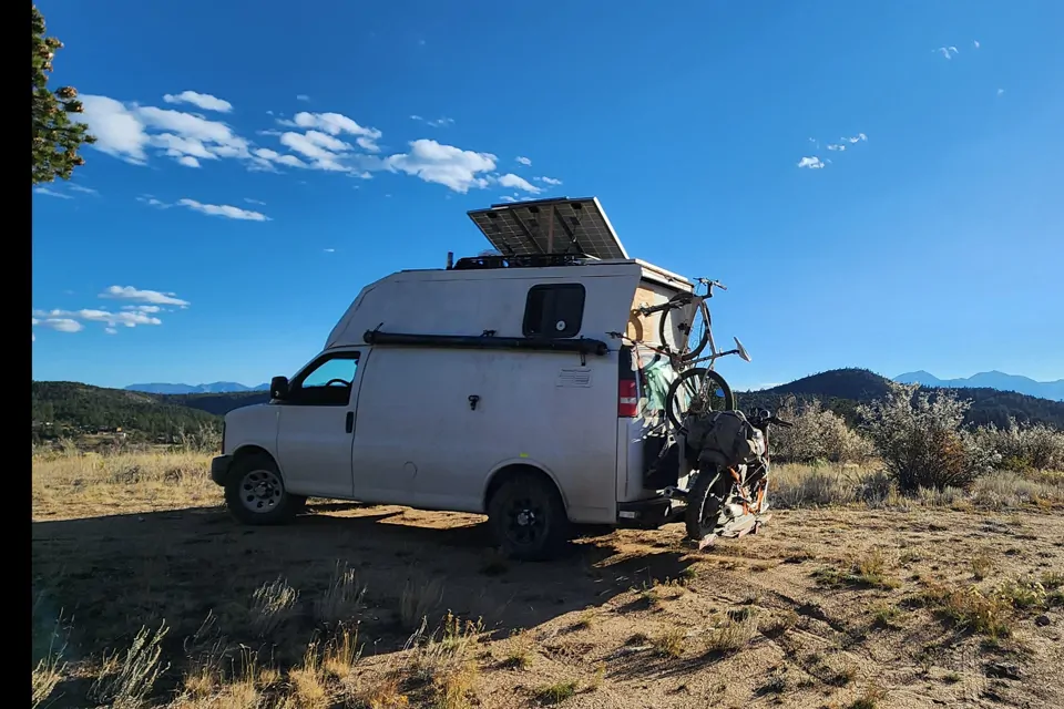 Comfort and functionality come standard: a composting toilet (indoors or discreetly outdoors), solar-heated water with a USB-powered shower and privacy tent, and a thoughtfully designed interior for work or play. For remote professionals, Moon Rock is a true mobile office—equipped with a desk, ample power, and Starlink internet capable of supporting everything from video calls to online gaming.