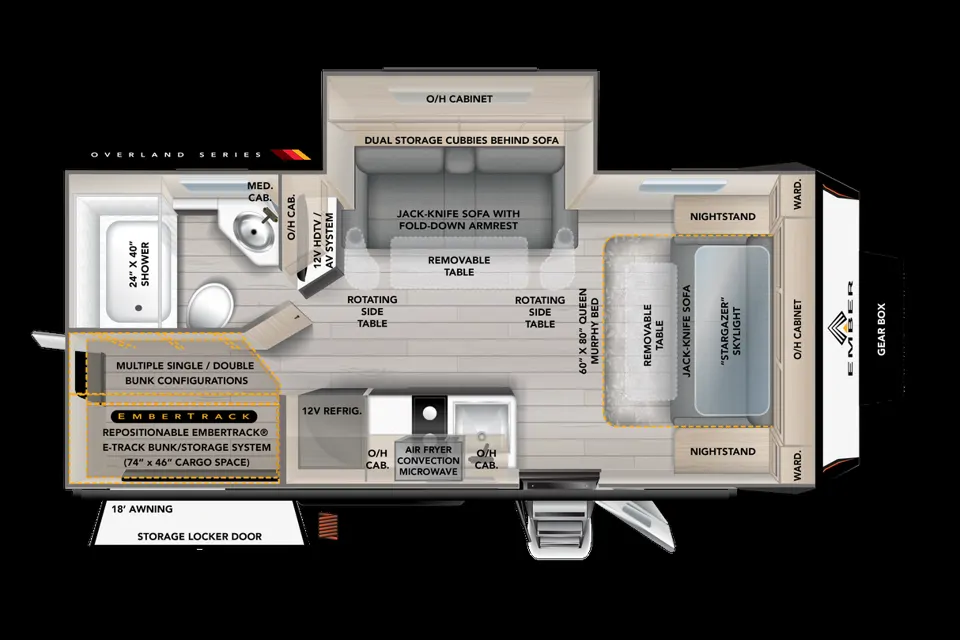 Get ready to explore the wild in comfort and style with the Ember Overland Off-Grid Travel Trailer. The perfect companion for off-the-grid adventures, national park tours, or weekend getaways. Go completely off-grid with 800 Watts of solar and a 55 gallon fresh water tank. Built for rugged terrain and remote destinations, this premium travel trailer combines top-tier durability with luxury features to make every trip unforgettable.
