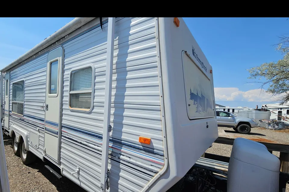She my be older but she's well maintained and in great shape! EVERYTHING and I mean everything works well. No leaks! Very clean. Carpets has been cleaned and there's no stains on the the beds or couches! Would definitely make a great "home away from home" She's also small enough to go almost anywhere. Can be towed by a mid sized SUV Explorer or Rav 4 or whatever. I will include the ball hitch. I have a generator that can be rented for $35 a day and the first tank is on me! The AC blows ice cold and when the stabilizer jacks are down it is as sturdy as can be!