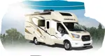 This small-but-mighty RV features Ford’s EcoBoost technology with 400 pounds of torque in the 3.5 liter engine. The Ford AdvanceTracsystem, combined with HillStart assist, lane departure warnings, and an emergency braking system make your trip as safe as possible. There are seatbelts for four. The addition of heated mirrors and backup monitors add additional safety. This RV gets about 14 miles to the gallon, which should cover about 300 miles or over three hours of drive time.