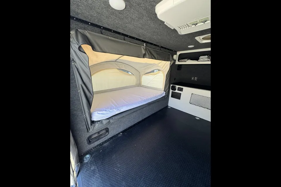 This camper is ideal for couples, solo adventurers, or a small family who want flexibility. Use it as a comfortable basecamp after a full day outside, or add gear to fit your style. Bikes, skis, paddleboards, you name it. The rear opens up to make loading and unloading effortless.