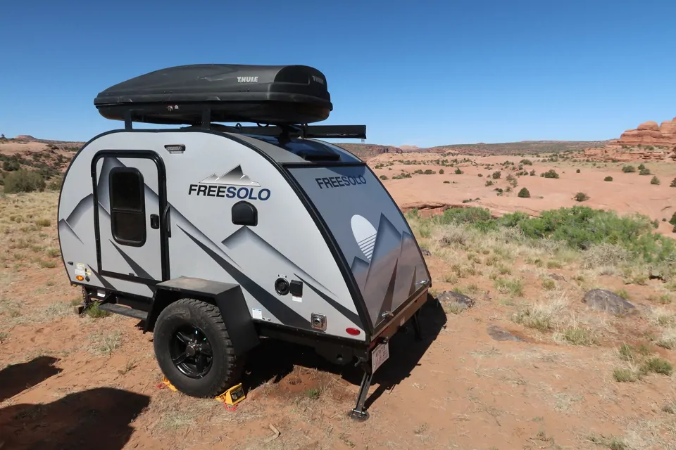 This is the perfect light weight get away travel trailer for anyone who wants to experience the outdoors and still have the luxury of home still with you! This Free Solo OG is great for campsites and even better for bundocking as well!