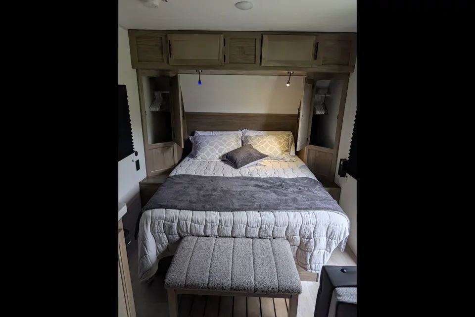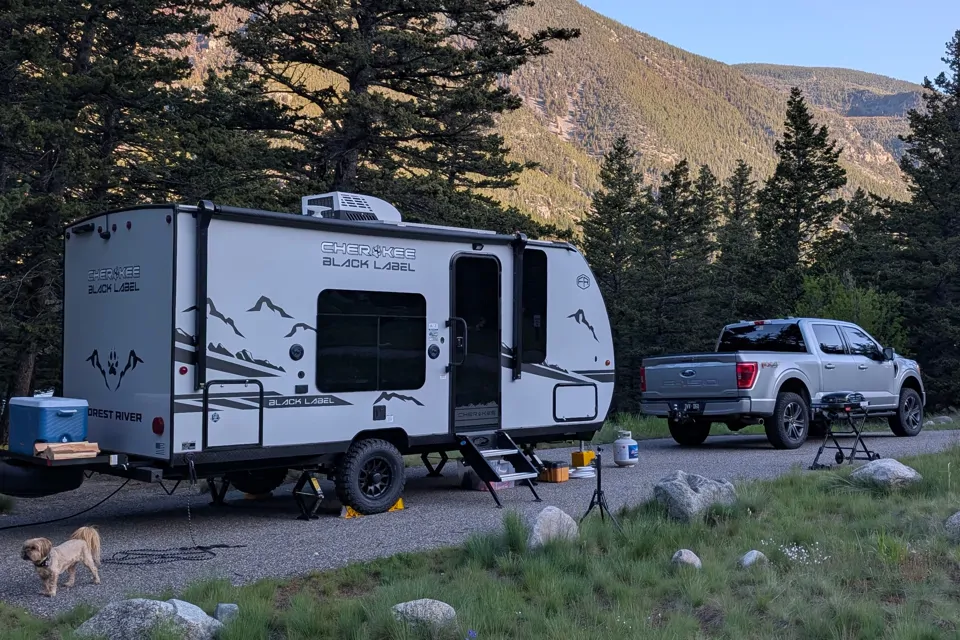 Our compact Wolf Pup camper is ready for your next adventure, whether it's a long weekend or an extended trip. It's equipped with 200 watts of solar power to keep the batteries charged, a gas range, and instant hot water. The 12-volt refrigerator and freezer combo ensures your food stays fresh. We also include a full set of kitchen and cooking utensils, linens, and other essential camping gear. Starlink, Weber Traveler grill and a generator are offered at additional cost.