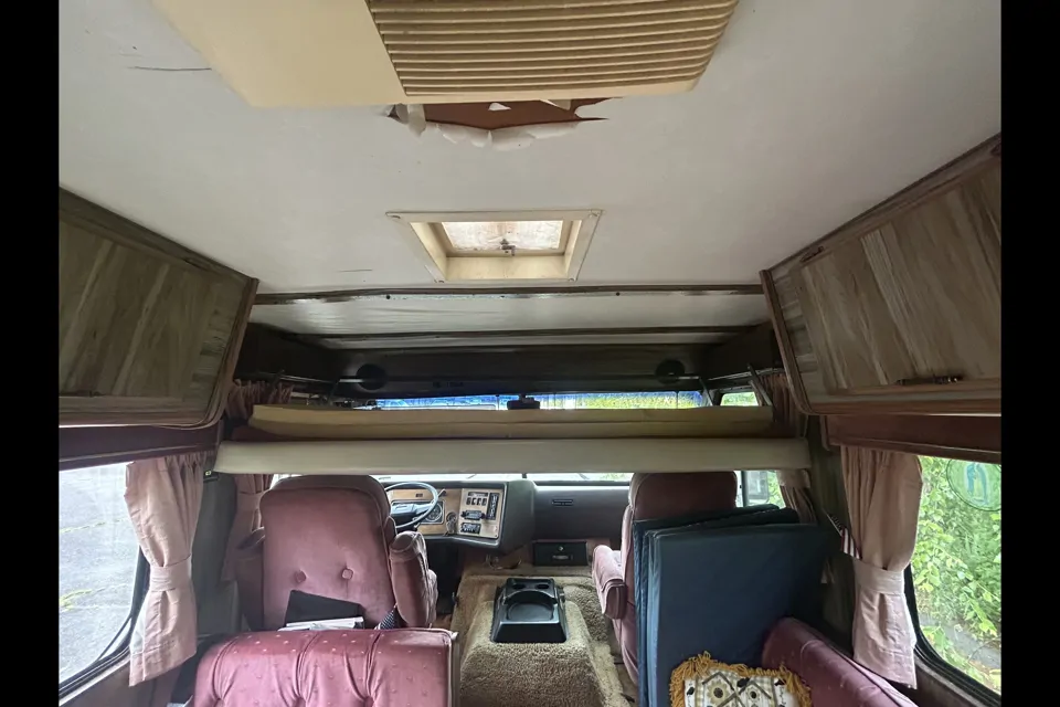 Vintage class C camper, all original camper with all standard amenities- sleeps 7, 24’ with hitch. Family friendly camper. Fully equipped with dishes, pots, pans, microwave, coffee pot, silverware, etc.