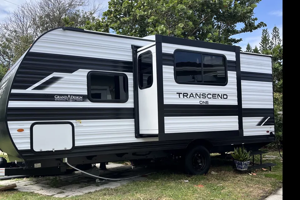 Hit the road in style with this barely used 2025 Grand Design Transcend ONE 161BH. This cool, compact bunkhouse camper is perfect for couples, small families, or anyone who wants a comfortable RV that is not too big and not too small. The smart layout gives you a queen Murphy bed up front, double bunks in the rear, a full bathroom, booth dinette, microwave, gas cooktop, and lots of storage and drawers. Outside, enjoy the exterior griddle, extra refrigerator, JBL sound system, and large power awning for relaxing at camp. At just 23 feet long, it is easy to manage while still giving you the features people want for a fun and easy getaway. (www.granddesignrv.com)