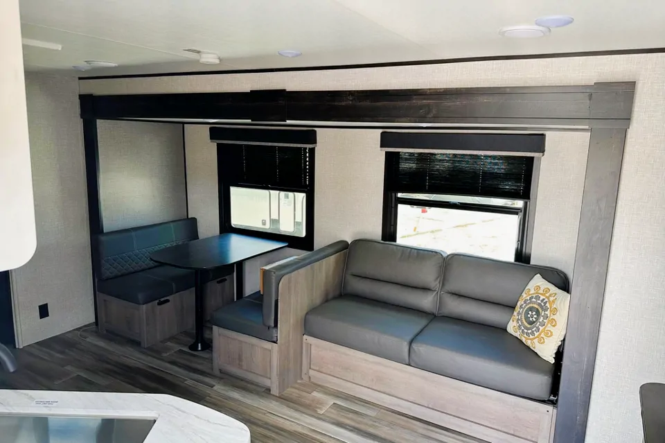 The RV was spacious, sparkling clean and stocked with various items that one might forget if new to RV’ing or a seasoned veteran. The rental process was easy and owners responded quickly and answered all inquiries. They were also very accommodating for pickup and drop off. We had 3 adults and two kids sleep comfortably. Highly recommend this rental!