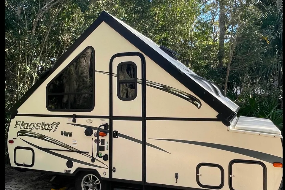 Welcome to A-frame Away! Your Glamping home away from home. Enjoy your camping trip in an rv that encourages you to connect with nature with almost all amenities of home. A-frame away is a folding rv that makes it easier to tow with a compact SUV and better on gas mileage. Set up is easy once your destination is reached and Sleeps up to 4 people, full size comfy queen bed and a dinette that converts to a double bed.