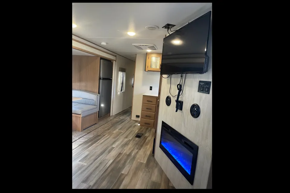 Like new ! Beautiful RV . Love the floor plan bedroom separate from living area feels more like a home ! Has a beautiful fireplace and lots of storage. Comes complete with all linens , towels, kitchen utensils , plates , cups , pots and pans.