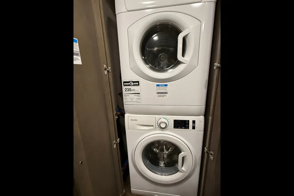 This spacious RV has a private master bedroom and bathroom, a full pull down bed over the cab, and a full size convertible dinette. There is 1.5 bathrooms, perfect for a small group. There is a long couch that reclines at all 4 sections and has massage and heat options on the outer chairs!