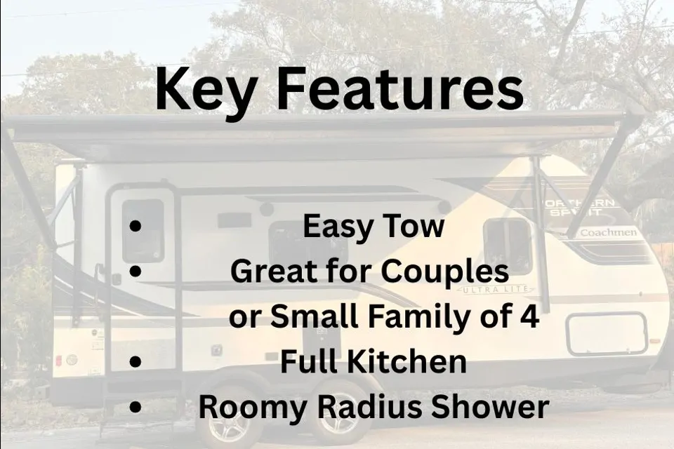 Meet “Thompson”, your modern, couples retreat, designed for comfort, and unforgettable adventures. This 2022 Dutchman Coleman Northern Spirit Ultra Lite 1943RB is a perfect sized travel trailer that blends stylish design with practical features, making it an ideal choice for couples or small families.
