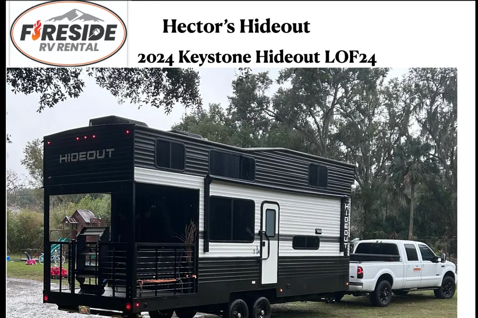 Looking for a unique camping experience? Look no further! Hector the Hero's Hideout is the answer. WIth a cool open floor plan like a mini house, it should meet all your needs. Hector comes with a full bathroom, a fully stocked kitchen, a family room with a hideaway table, two lofts and a back porch with a gliding rocker. The large windows allow for some amazing views! Sleeps up to 6 people. Rent Hector's Hideout today and build some wonderful memories you will cherish for a lifetime!