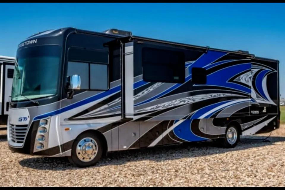 Hello!!! You will not find an RV that is easier to drive than this one. Rent our beautiful motorhome today and experience the freedom of cruising around in a fully contained home on wheels. This 32-foot RV has all the comforts of home including beds that sleeps 5,(2)A/C for those warm summer nights, two full shower and toilet, burner stovetop, microwave, fridge/freezer, swivel seats with a fold out dining table, you name it! Everything you need contained pure luxury and freedom. Hit the road in this brand-new GEORGETOWN 2022. We are also able to deliver & pick up if needed, just send us a message and we'll get back to you right away!