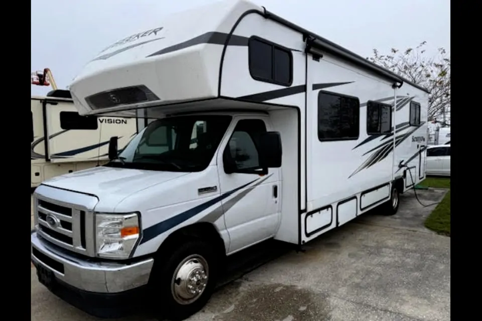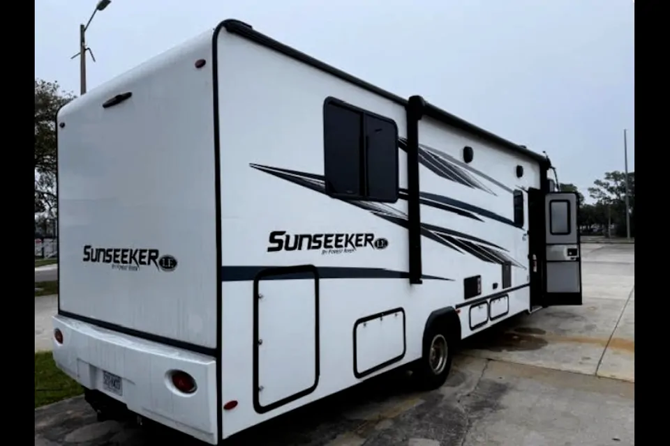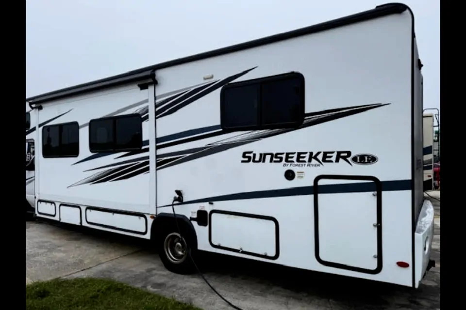 The 2022 Forest River Sunseeker is a Class B motorhome designed for family road trips and extended travel, blending comfort, convenience, and durability. Built on reliable Ford (and other) chassis with a powerful V8 engine, it offers a range of floorplans with sleeping for up to about 6–8 people, a fully equipped kitchen, bathroom, and generous living space. The interior features residential-style cabinetry, large panoramic windows with blackout shades, comfortable sleeping areas, and modern amenities like a 12V refrigerator, convection microwave, and entertainment systems. Exterior features include laminated fiberglass construction, a power patio awning with LED lighting, heated holding tanks, optional solar prep, and backup/side-view cameras for easier maneuvering. It's the perfect motorhome for a weekend getaway!