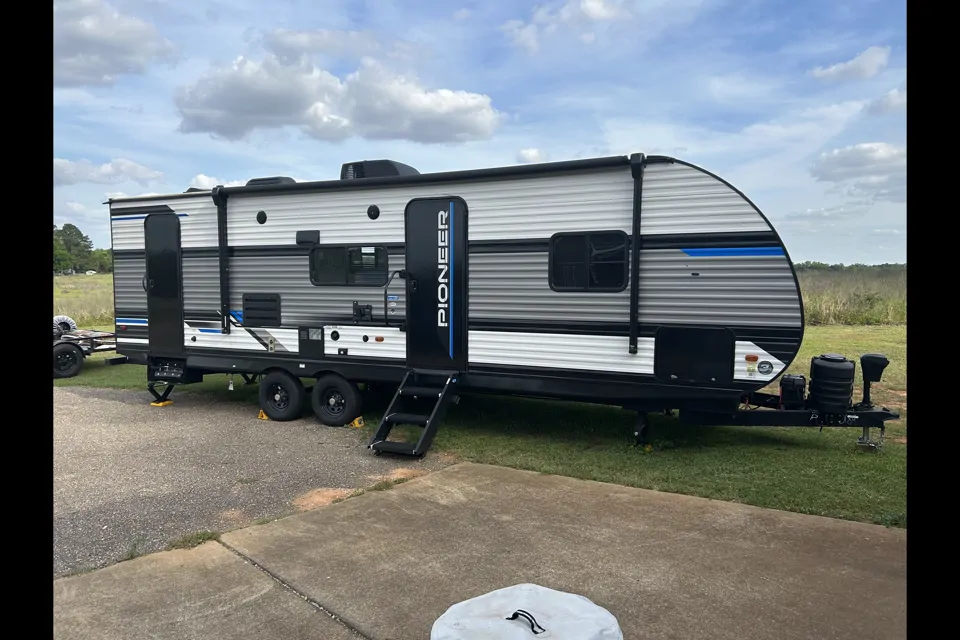 Discover ultimate comfort and convenience with our brand new 2024 Pioneer BH270 travel trailer, available for rent! This spacious, modern RV sleeps up to 8, featuring a private queen bedroom, double bunks, a full kitchen, and a cozy dinette. With air conditioning, ample storage, and a stylish interior, it’s perfect for family trips, couples’ getaways, or group adventures. Tow it or request delivery to your dream destination and enjoy the great outdoors with all the comforts of home. Book now and start creating unforgettable memories!