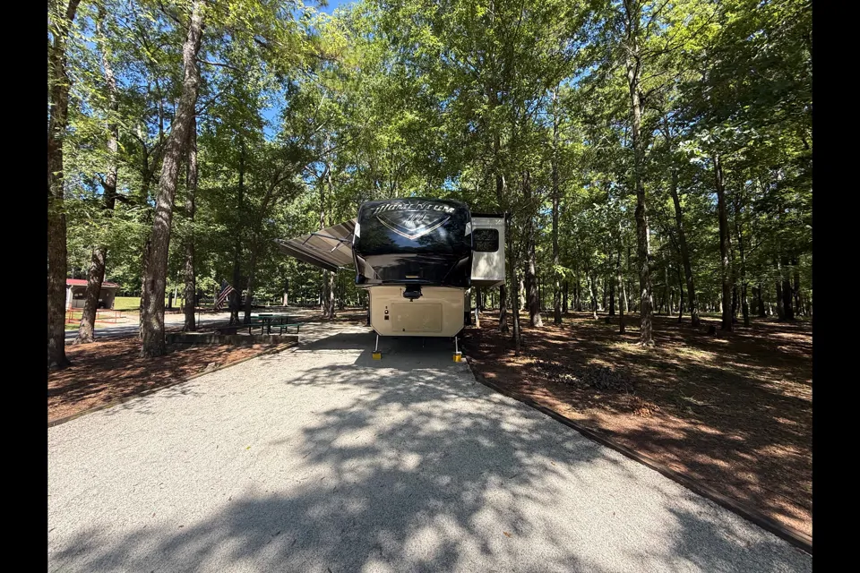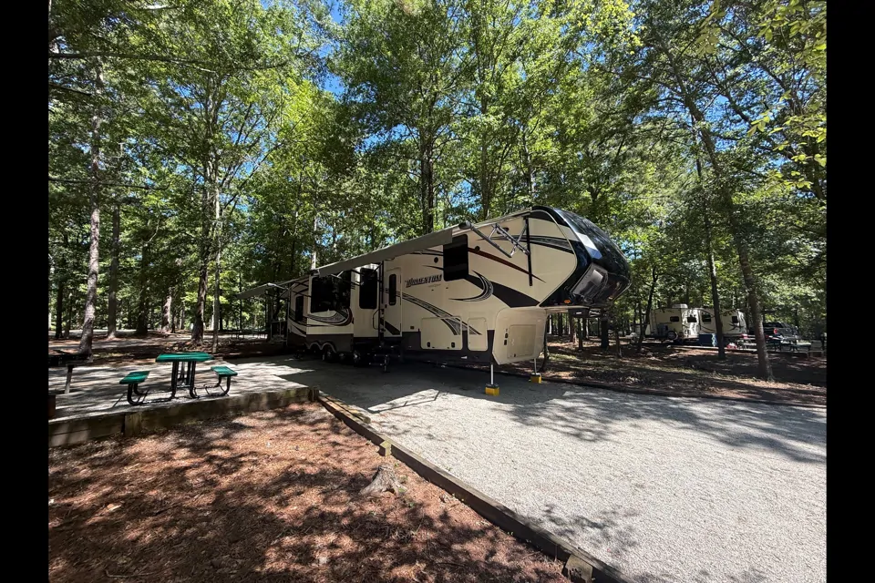 Grand Design Momentum 385TH delivery ONLY! Walk into the fully furnished Kitchen with Double fridge freezer, gas stove/oven, Pantry, utensils, cookware, and serving dishes. Sit down or take a load off on the couch that has 4 (YES 4) Recliners. Turn on 1 of the 4 TVs w/ firesticks (Living, Toy Hauler, Outside, and Master). During the day enjoy your site outside under 1 of 2 awnings with exterior TV (don't worry we will leave you a citronella candle). Enjoy the master bedroom with King Size Bed, dresser, and large Closet to store your clothes. There is a twin loft bed for your smallest and two queen beds in the toy hauler with drawers. 1 and a half baths furnished with toilet paper. The bottom queen bed in toy hauler turns into bench seats for sitting and playing cards or eating at the table.