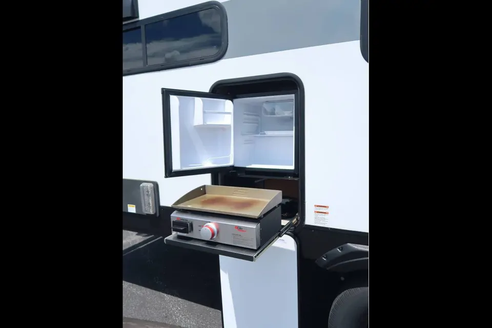 • Outdoor Grill: Savor the joy of cooking under the open sky with our easy-to-use outdoor grill. Whether it’s a hearty breakfast to start your day or a delicious dinner after a day of exploring, your culinary creations will taste even better al fresco.