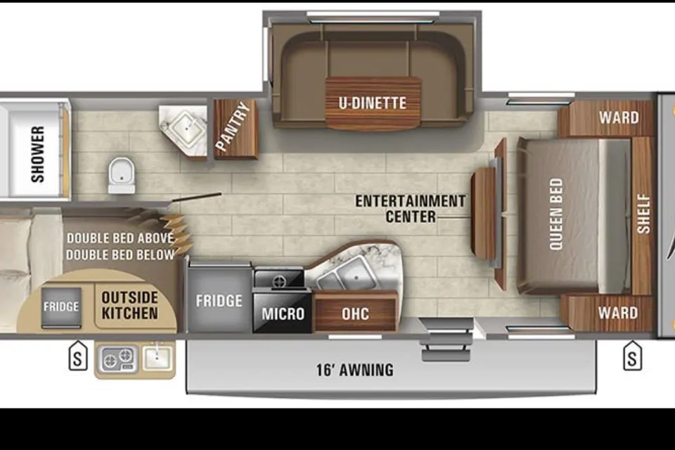 Sleeps up to 8 comfortably – Queen bed, double bunks, and convertible dinette.