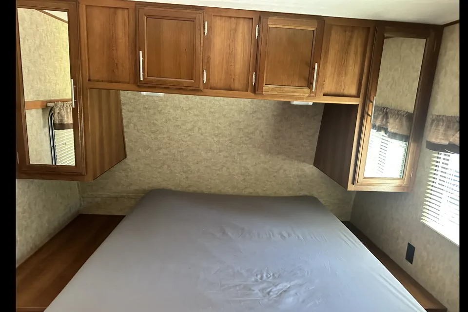 Comfortable camper to get in the outdoors and enjoy the mountains or Bear Lake. A/C works great on them hot days when you need to get out of the heat. It’s spacious with bunk beds and it’s own master room.