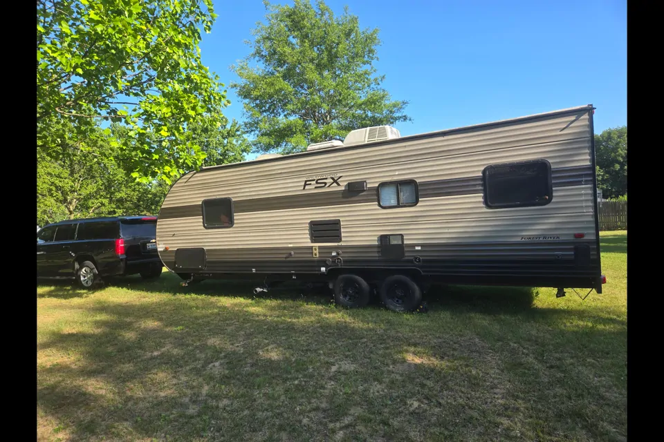 Nice toy hauler. Only used 4 times myself. Don't use it enough so I figured I would start renting it out. Has a comfortable queen bed in the master. Full bathroom with shower and sink. Full kitchen fully stocked with dishes. Everything you need to go camping. Just hook up and drive. It is detailed cleaned after every use