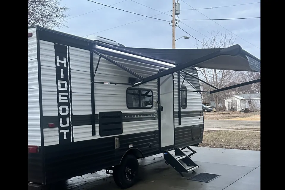 Enjoy your next adventure in this well-maintained 2022 Keystone Hideout 176BH, a perfect blend of comfort and convenience for families or small groups. This lightweight travel trailer features a smart layout with a cozy queen bed, double bunk beds, a convertible dinette, and a fully equipped kitchen with refrigerator, microwave, and cooktop—everything you need for a relaxing getaway. The bathroom includes a shower and toilet, making it easy to enjoy off-grid or campground stays.