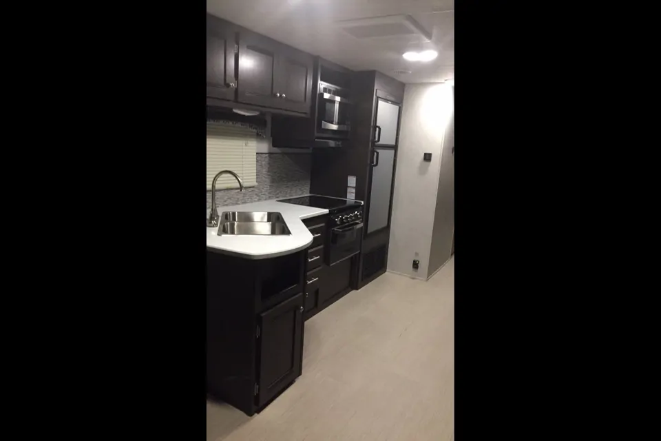 Step outside and enjoy the outdoor kitchenette, complete with a sink and fridge—ideal for cooking, rinsing up, and keeping drinks cold while you soak in the outdoors. Inside, the full tub and shower unit makes cleanup easy after a long day of adventure, giving you the comfort of home wherever you roam.