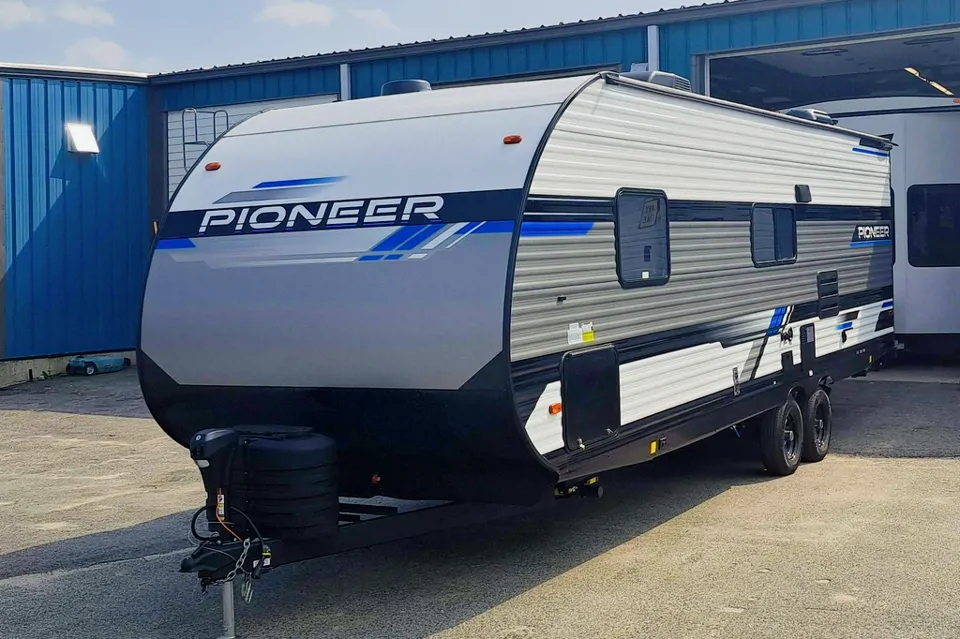 Camp in luxury! This is a BRAND NEW 2023 Heartland Pioneer Bh250. This gorgeous travel trailer sleeps up to 6 adults and is a hair under 30 feet long. It has all the amenities you would find in your own home. It has a Large Queen bed with its own separate quarters.. separate from the rest of the coach. An 8 cf fridge.. 3 top gas burner range as well as an oven.. microwave.. Ducted 13,500 btu A/C.. ducted electric furnace heat.. and much much more. The bathroom has a half size Tub with sides.. shower and foot flush toilet. On the outside.. it has a 14ft power retractable awning.. outside shower.. AND outside speakers for entertainment! I’m more than happy to deliver and set up the camper for you. Take the whole family on that memorable camping trip you’ve been meaning to take!