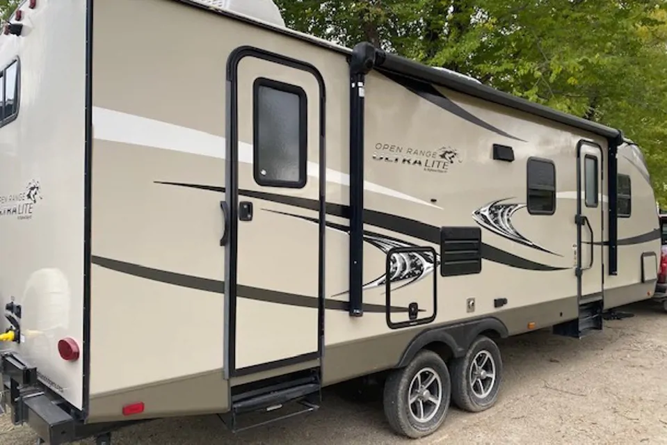This lightweight trailer is in excellent shape and has everything that you need to enjoy a great camping trip! Fully equipped with excellent amenities (including: A/C, heat, slide out, tv, dvd, stereo, power jack, fridge/stove, microwave, tools, garden hoses, extra power cord, bathroom w/ toilet, sink and shower, couch, table w/ bench seats and bunks that sleep up to 10 when you include the master bedroom-with an excellent new mattress!) Watch this advertisement video to see more on this great trailer!