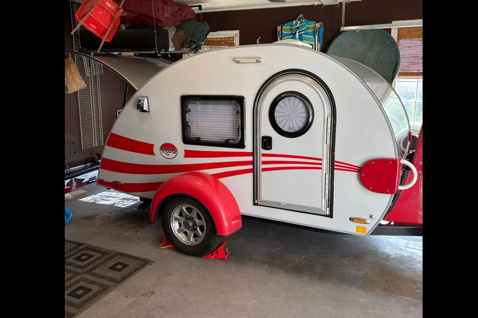 Ok, bicycle may be a stretch but I can pull this across my drive way by myself. Amazingly cute and totally towable 2016 T@G teardrop trailer. This is one of the smallest ( 13.7 ft), but best made units there is. all the wood surfaces are actually wood (rare these days), and everything works like a charm. Fits a guaranteed two adults, and however many dogs and kids (not provided) you can put up with. Not good at backing a trailer into a spot? Just detach from the hitch and push it where you need it to go.