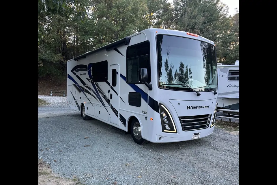 Introducing the 2023 Class A Windsport 29M—spacious enough to sleep up to 7 people, with solid doors for privacy and a full-length driver-side slide-out for extra room. No special license is required to drive this Class A RV, and it’s compact enough to maneuver with ease. Packed with all the amenities you could want, it’s perfect for your next vacation. If you're comfortable driving a 30-foot vehicle and booking for at least 2 nights, this RV is ideal for you. It also features 3 TVs—2 inside and 1 outside, perfect for tailgating or relaxing outdoors while watching your favorite show while enjoying nature. Ready to hit the road!