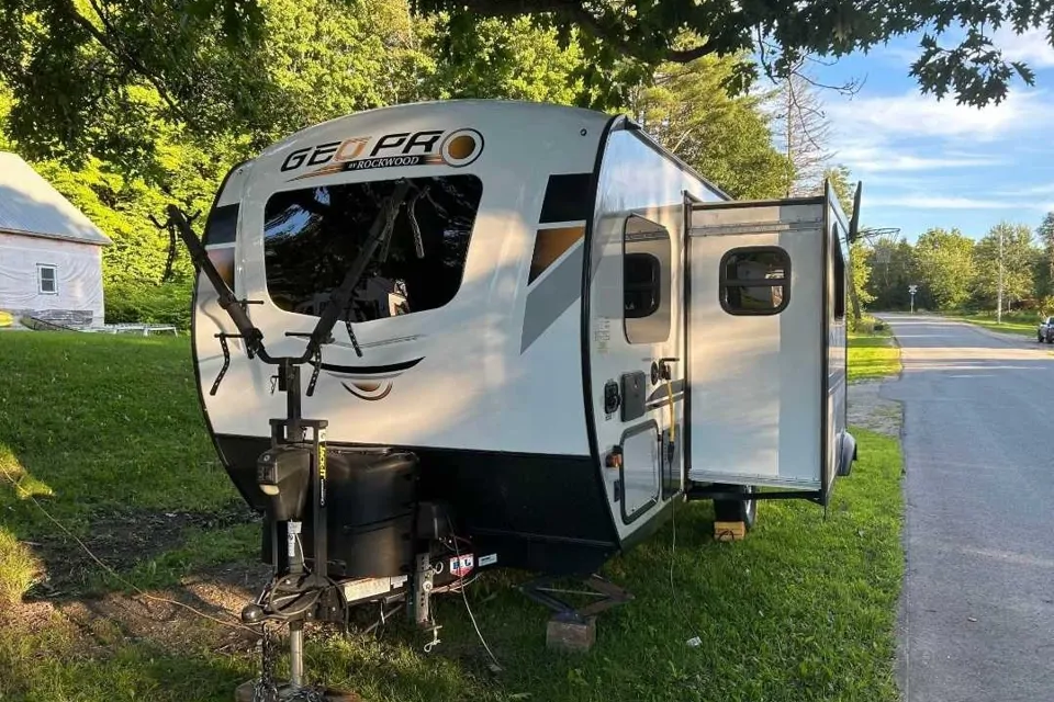 After owning pop up campers over the years wevupgraded this year to this beautiful, modern, lightweight like new camper. Sleeps a family of upto 6. Has a queen bed in front, a slidout with dinner table that turns into a bed, and two twin bunk beds.
