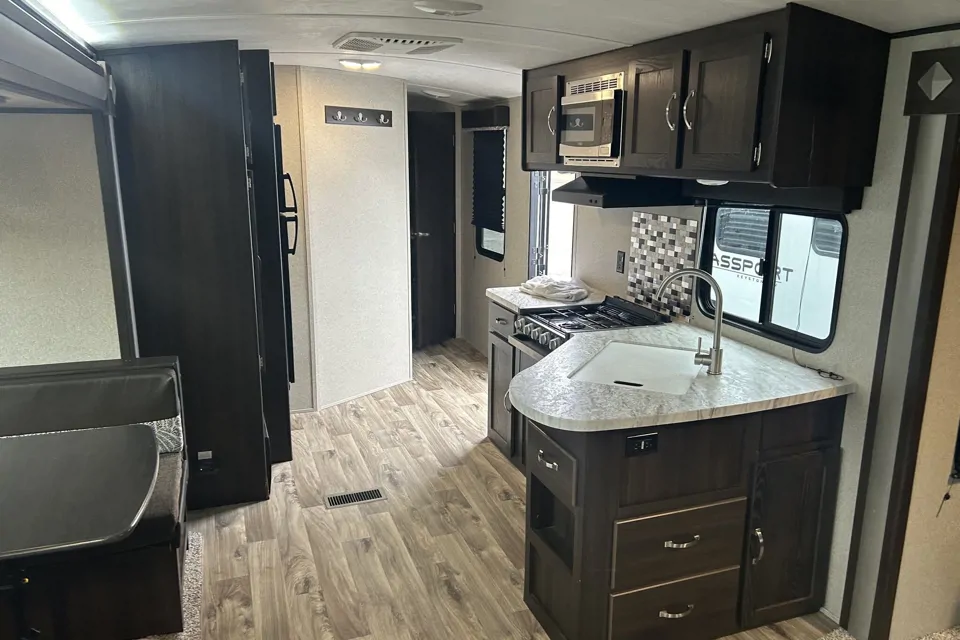 The 2018 Keystone SG311RE19 is a sleek and comfortable travel trailer, designed for memorable camping adventures. With a cargo capacity of 471 kg and a gross weight rating of 9760 pounds, it strikes the perfect balance of safety and functionality. Ideal for short-term rentals, this camper promises a worry-free and enjoyable experience.