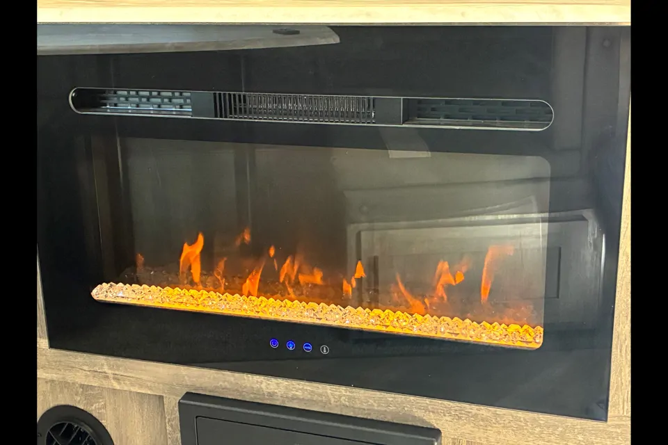 This RV is set up very comfortable for two travelers with a single bedroom. The bed is luxuriously comfortable. The two recliners in front of the fireplace make your morning coffee or book reading super enjoyable. This camper comes with a dual brew coffee pot. The shower head and pressure will surprise you. This is a great set up that has served my wife and I well. An electric black stone, linens along with extra stuff are included Camp chairs and a rollout rug keeps the place clean and inviting. We have an electric bike rack that can be included for 10 dollars a day. You can pick it up or I will deliver it and set it up to your site within 100 miles or so (flexible). No Smoking and no,pets please