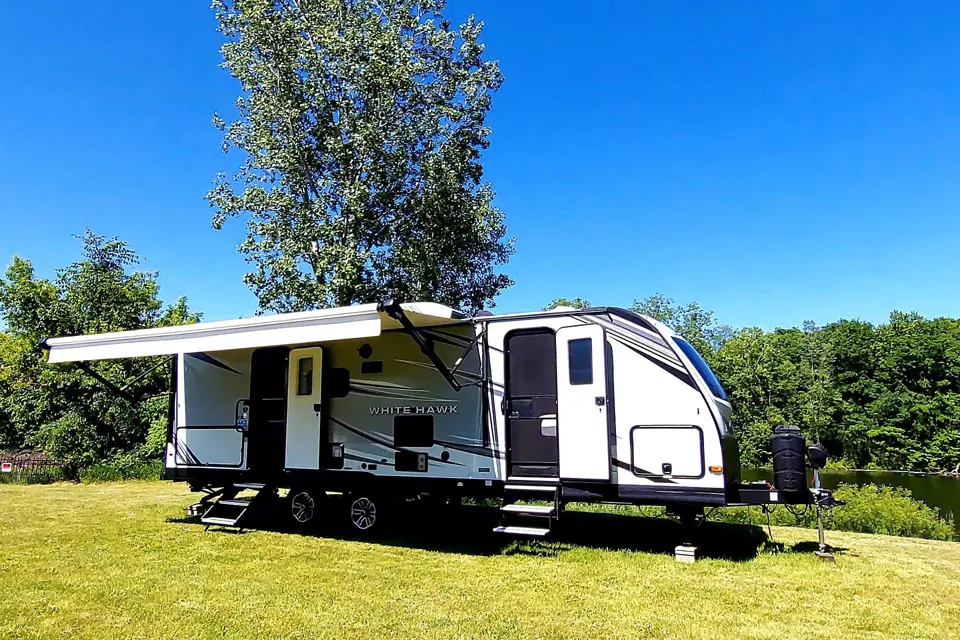 Embark on your next adventure in style with our 2021 Jayco White Hawk 27RB RV rental! Perfect for couples or small families, this elegant travel trailer features a spacious rear bath, a comfortable queen bedroom, and a versatile living area with luxurious theatre seats and a convertible dinette. The fully equipped kitchen, complete with modern appliances, makes meal prep a breeze, while the bathroom offers a large shower and ample storage. Enjoy outdoor living with the power awning, LED lighting, and outdoor kitchen. Built with Jayco’s renowned quality and attention to detail, the White Hawk 27RB guarantees a relaxing and memorable travel experience. Book today and start making memories!