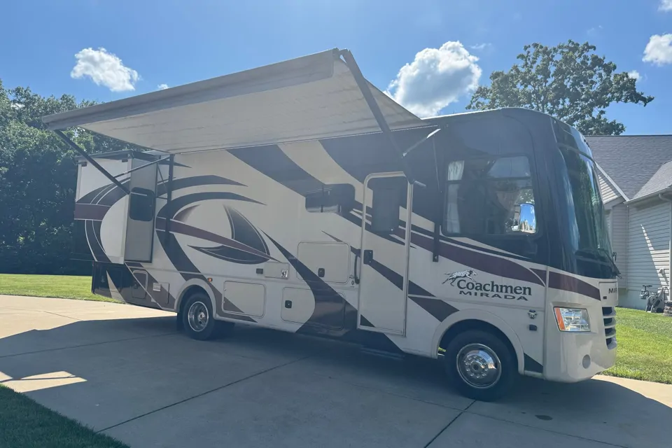 Located in Lake St. Louis, MO, our motorhome is clean, sanitized, and stocked with the essentials to make your trip easy and enjoyable. Whether you're heading to a national park, taking a weekend at the lake, or planning an extended road trip, this Coachmen Mirada is ready for the journey. Delivery and setup are available within 50 miles for an additional fee. Pets are welcome with prior approval. No smoking, please.