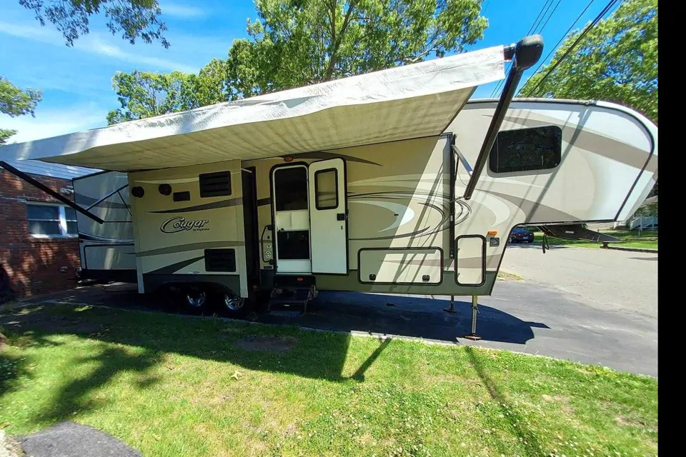 2016 keystone cougar.Clean and looks new. Cleaned and disinfected between each rental. Queen size bed, 2.5 bunk beds,convertable couch to a full size bed and a table that converts to a small light duty bed. Three indoor tv's 40" Sony,two 32" Vizio and a legend in the bunk room. Upgraded JBL sound system inside kenwood outside. Indoor kitchen microwave,stove top,oven and refrigerator outdoor kitchen stovetop, refrigerator and a weber grill. Indoor air conditioning and heat. Outdoor Table and recliners provided.Polar package rated.