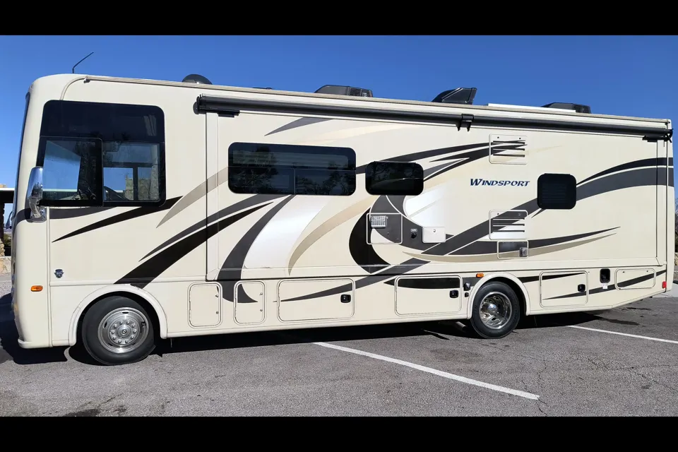 Ready to hit the open road in style? Meet our epic 2017 Thor Windsport 29M – affectionately known as The Dog's Pleasure Dome! This isn't just an RV; it's your rolling palace of adventure, perfect for families, couples, and especially your four-legged best friends. Whether you're chasing sunsets in the Southwest, crashing family gatherings, or turning holidays into unforgettable road trips, this beauty has everything to make your journey comfy, fun, and hassle-free!