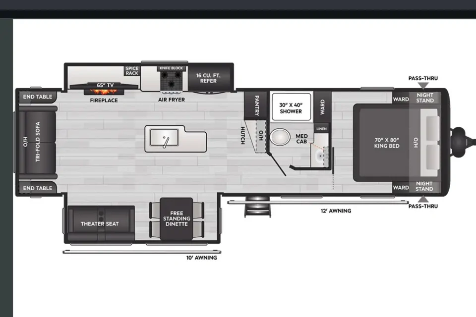 You’ll also have a full private bathroom with a shower, toilet, and sink, giving you all the convenience of home while on the road.
