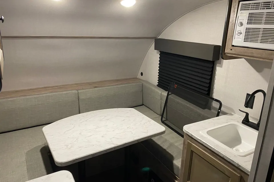 Nearly new and barely used ‘Teardrop’ style travel trailer most suited to a couple camping together. V light for towing purposes, all amenities listed plus Bluetooth speaker. Some amenities only work with a ‘hook-up’ but lights, usb/usb-c charging, water pump, water heater, heater, stove all run off solar or gas. We never camp with a hook up but use the fridge as a cooler effectively so our drinks are always cold!