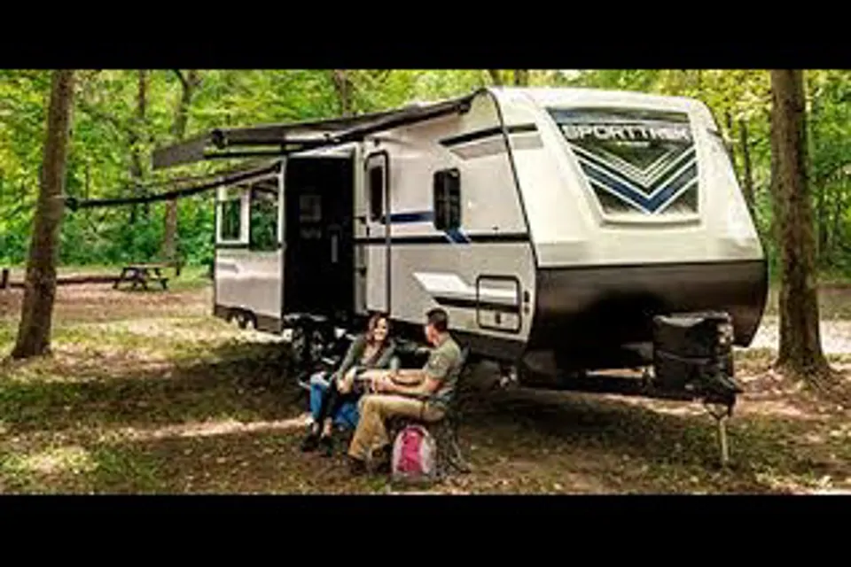 Get ready to camp in style with our fully-loaded 2019 SportTrek 327VIK. This spacious travel trailer features three slide-outs, a private master bedroom with a queen bed, double bunks in a separate kids' room, and a cozy outdoor kitchen — perfect for flipping burgers or sipping your morning coffee in the fresh air.